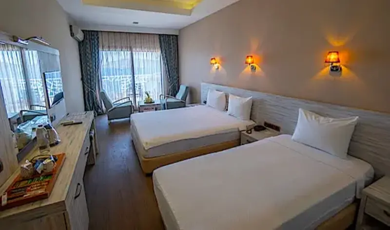 The room has two single beds or one king-size bed. A single bed or baby cot can be added to the room (subject to availability). Room Size: 18-25 m2 Safety Deposit Box Tea and Coffee Set Satellite Channels Water Kettle Shower Hair Dryer Air Conditioning Wifi Minibar Balcony or French Balcony Ceramic or Carpeted Flooring WC Laminate Flooring Telephone LCD TV
